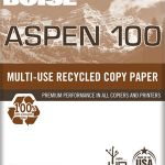 Aspen 100% Recycled Copy is a simple, effective means of conveying your concern for the environment. This high quality environmentally friendly paper is a 92 brith and contains 100% post-consumer fiber, is archival, chlorine free, and FSC certified. Copier,Laser, and Ink-jet guaranteed.