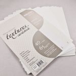 20 sheets each of 8.5x11 White and Ivory in a 65lb cover with a unique embossed texture. This sheet would be great for scrapbooking, invitations, cards, crafts or presentations!